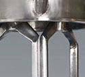 The timing of the blades is fixed, allowing for the tangential overlapping of the standard rectangular, winged (finger-type), or helical stirrer blades. A revolving scraper arm is optionally available for wall scraping requirements.