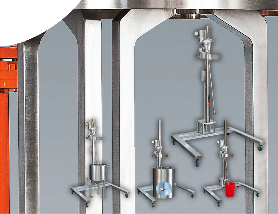The CMX Model LX-1 described on this page combines a sanitary stainless steel propeller mixer with a special portable electro-mechanical lifting arrangement. The system was provided with interchangeable marine propellers and hydrofoil impellers to cover a wide range of mixing tasks from small pails to large drums.